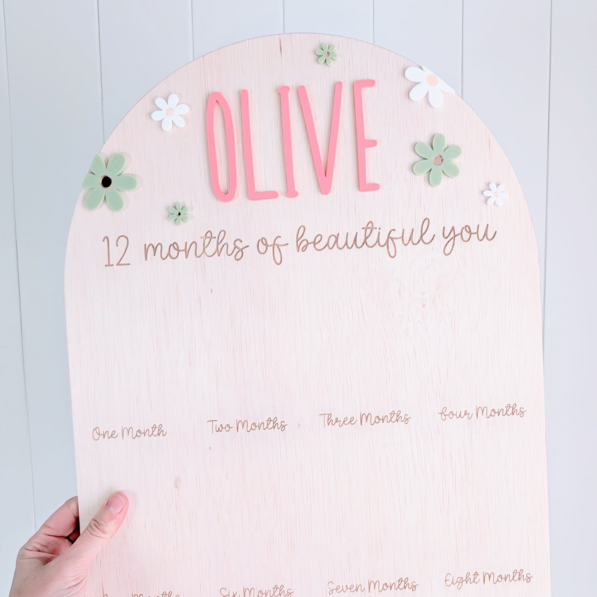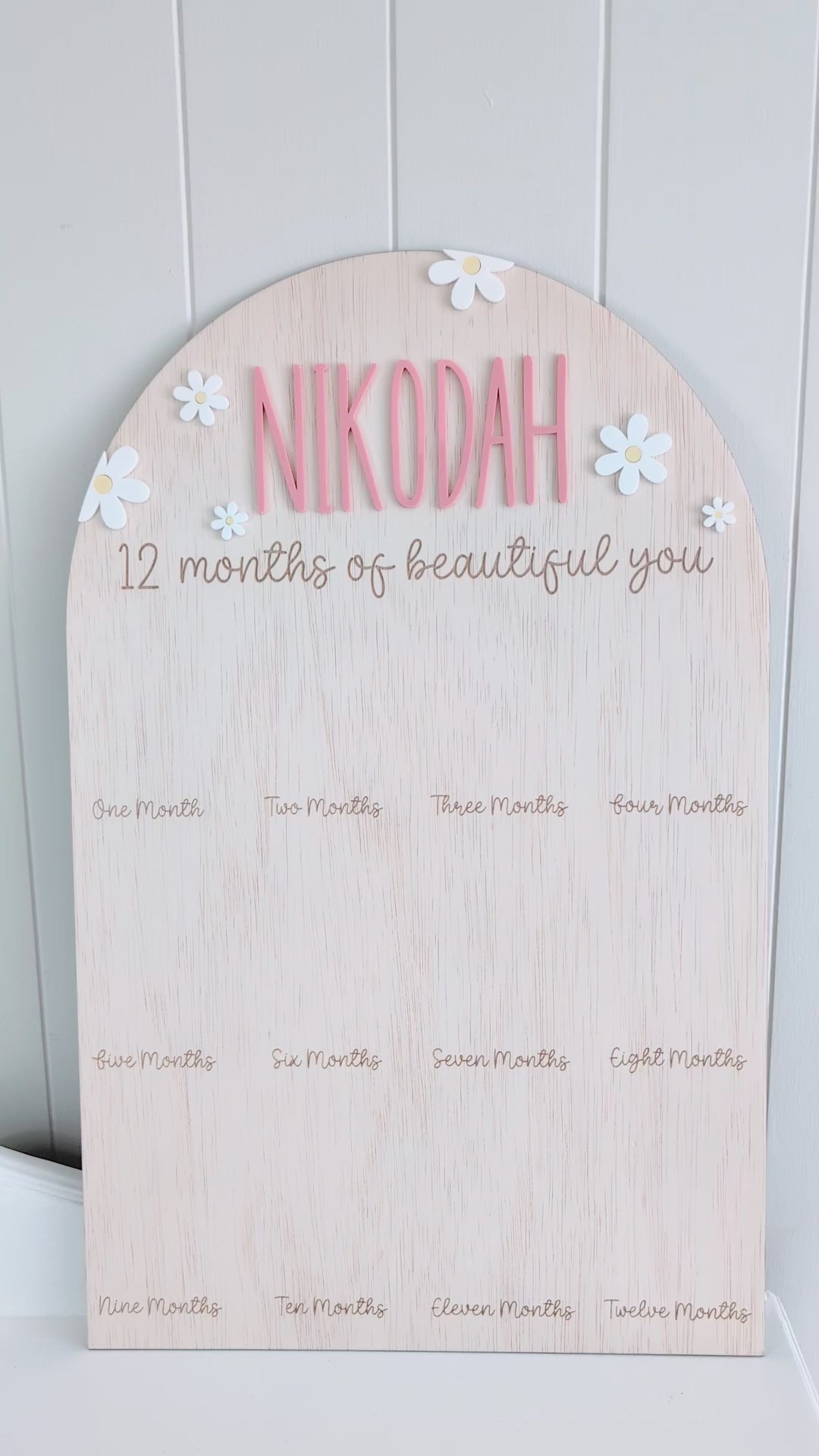 Our Daisy Theme 12-Month Photo Board is a sweet and cheerful way to showcase your baby’s monthly photos - from tiny newborn to cheeky one-year-old. Perfect for first birthday celebrations and a timeless keepsake to treasure for years to come.