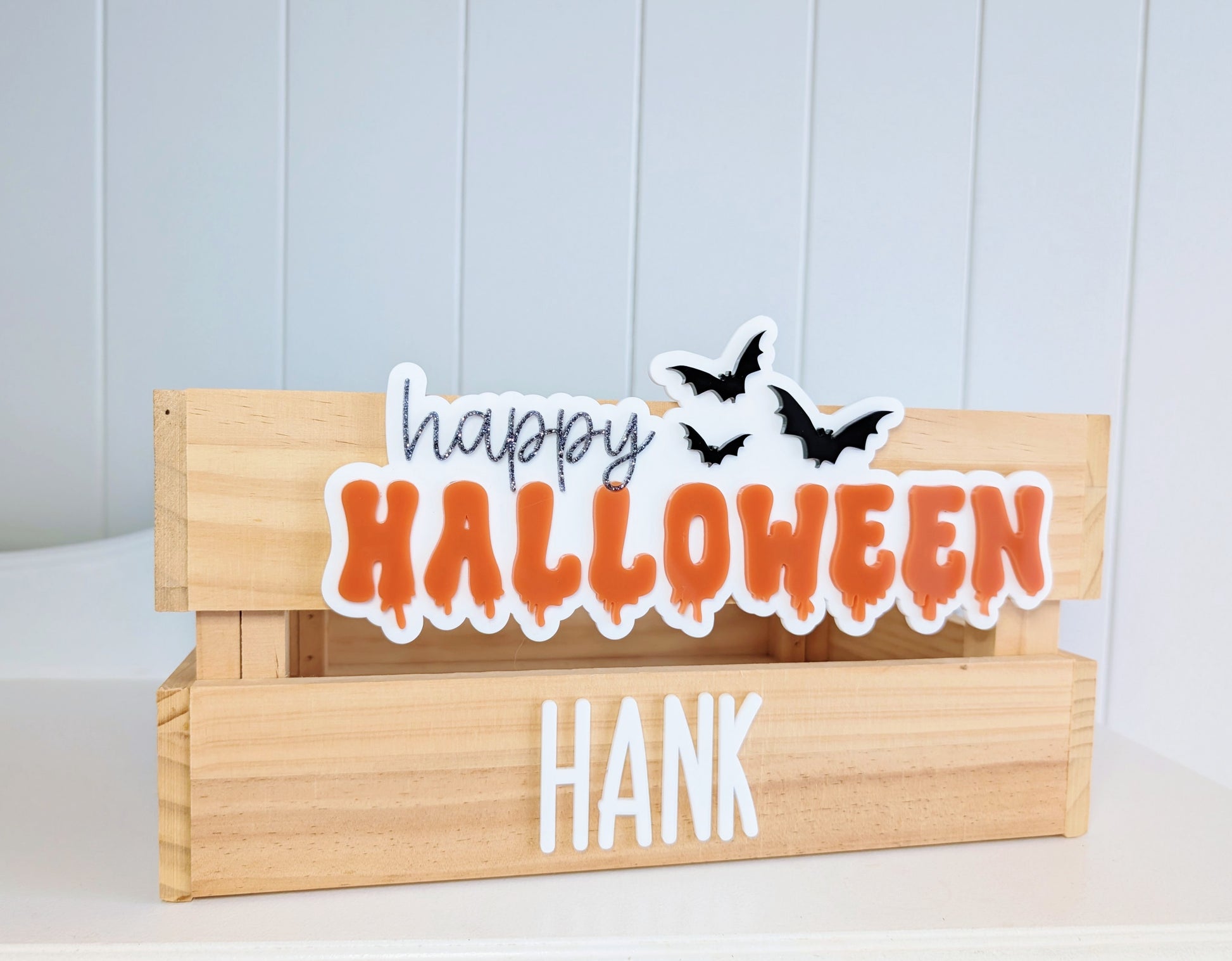 Includes Happy Halloween Plaque & Personalised Wooden Crate.