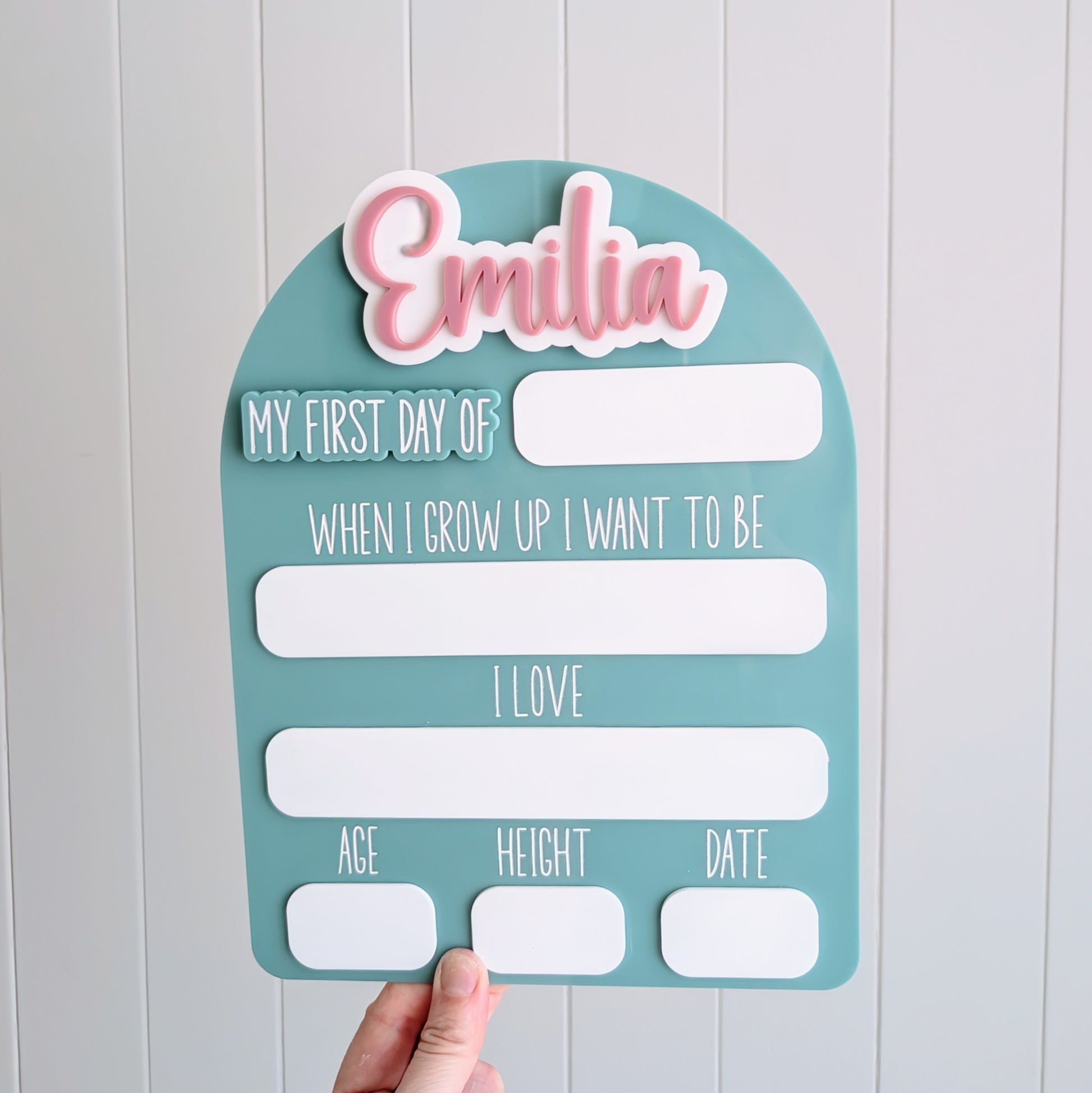 Remember this day forever with our "My First/Last Day" acrylic arch board with interchangeable names!