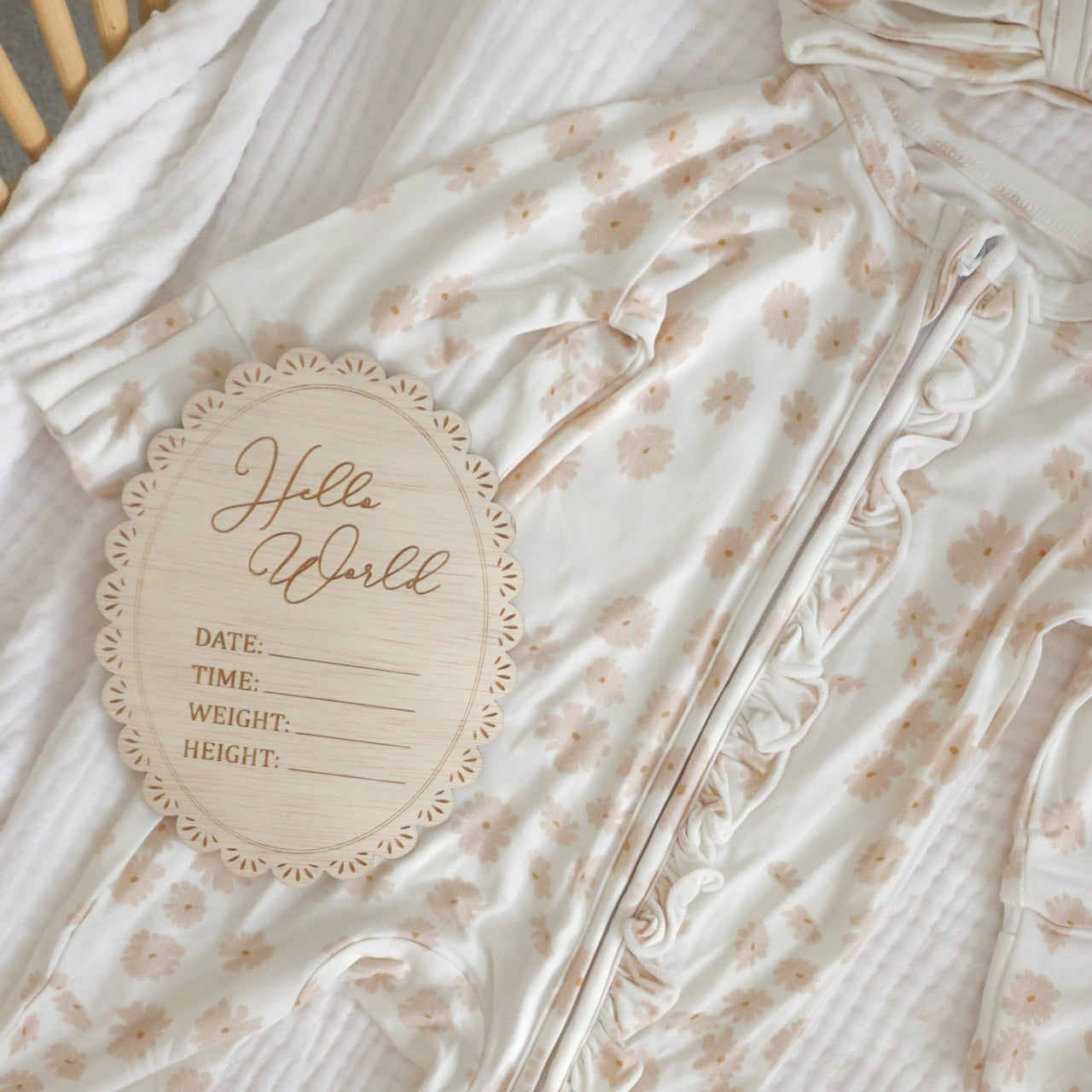Designed in a timeless vintage style, this plaque is perfect for introducing your baby to family and friends. A gorgeous photo prop and a cherished keepsake for years to come.